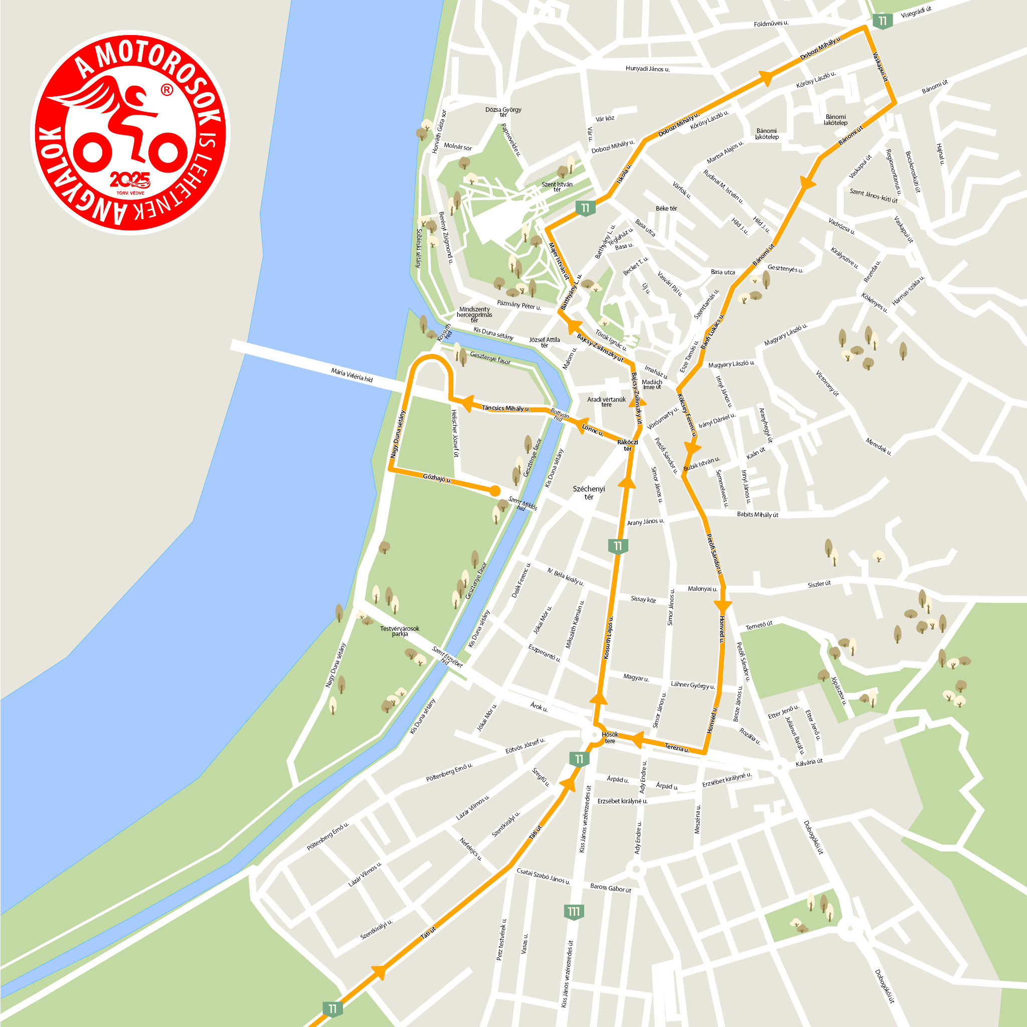A motorosok szombaton 9:00 órától 11:30 óráig gyülekeznek Dorogon az Otthon téren, majd a rendőrségi eligazítás és tájékoztatás után a résztvevők dél körül indulnak el az alábbi útvonalon::