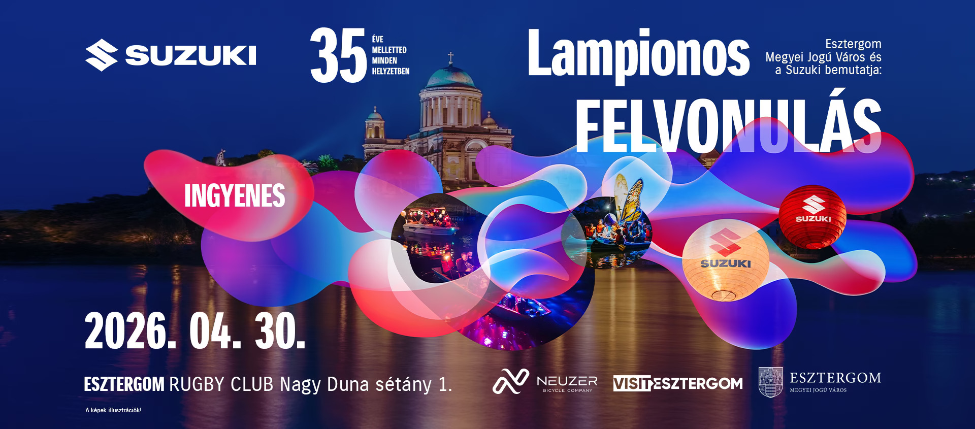 Április 30-án, csütörtökön ismét megrendezik az évtizedes múltra visszatekintő Lampionos Hajós Felvonulást Esztergomban. A látványos esemény során kreatív elemekkel és színes fényekkel feldíszített hajók és csónakok vonulnak végig a Kis-Dunán. A felvonulás 20:45-kor indul, és egészen 22:00-ig tart, a hangulatról pedig Szujó Zoltán és DJ Juhász Laci gondoskodik. Az est a Rugby Club területén folytatódik koncertekkel: 22:00-kor Peter Srámek, míg 23:00-kor Zoller Zsolt lép fel.