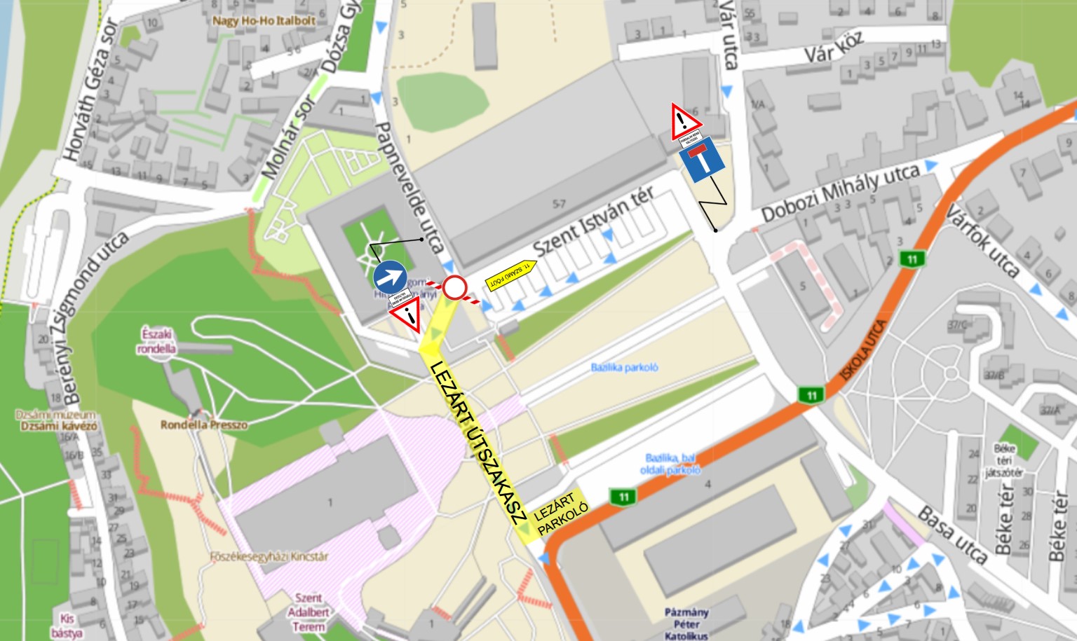Tájékoztatjuk a Tisztelt Lakosságot, hogy 2025. június 21. (szombat) reggel 8:00 óra és 2025. június 22. (vasárnap) reggel 03:00 óra közötti időben a Vár utca-Papnevelde utca és a Szent István tér a Prímás Pince 15. születésnapját ünneplő szabadtéri rendezvény miatt ideiglenesen lezárásra kerül.