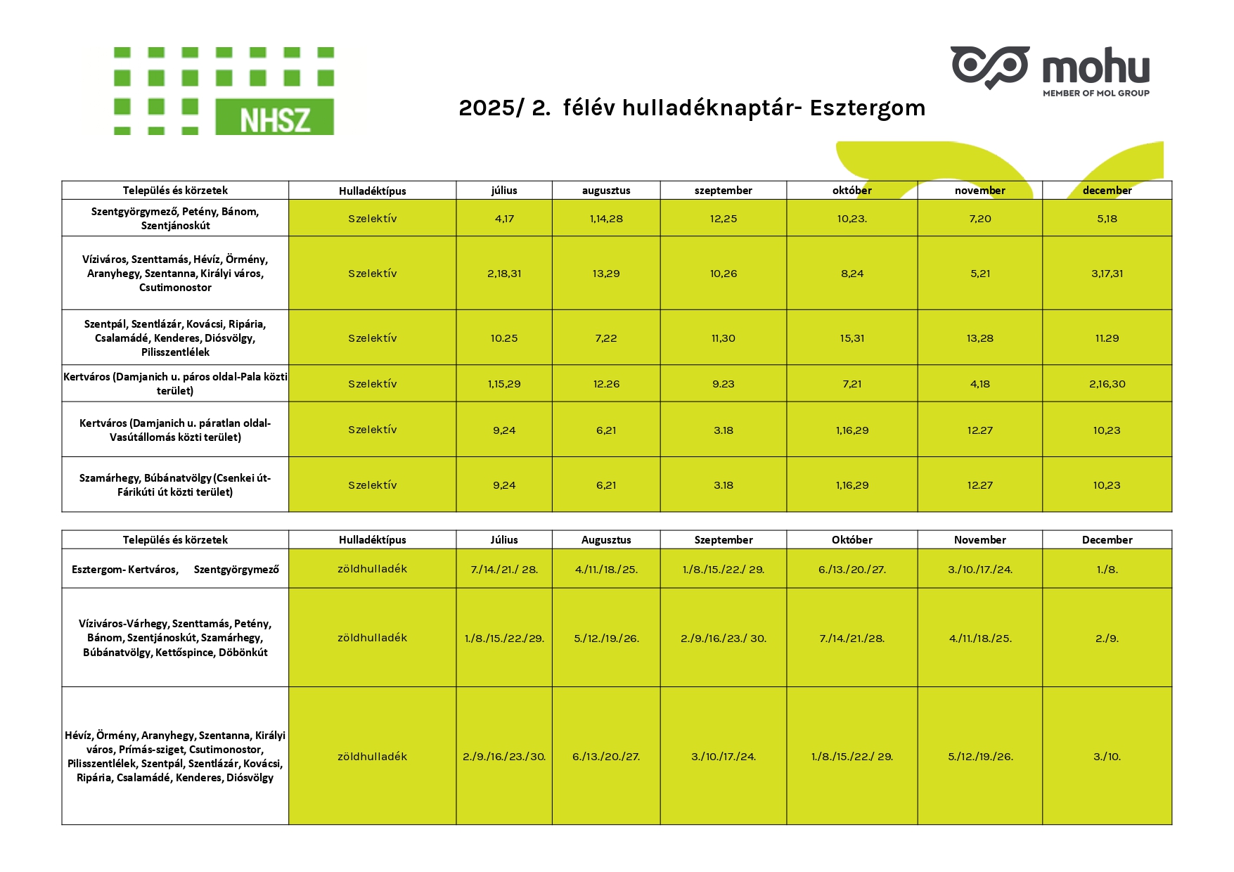 Ezúton tájékoztatjuk a Tisztelt Lakosságot a 2025 II. félévének hulladékelszállítási rendjéről.