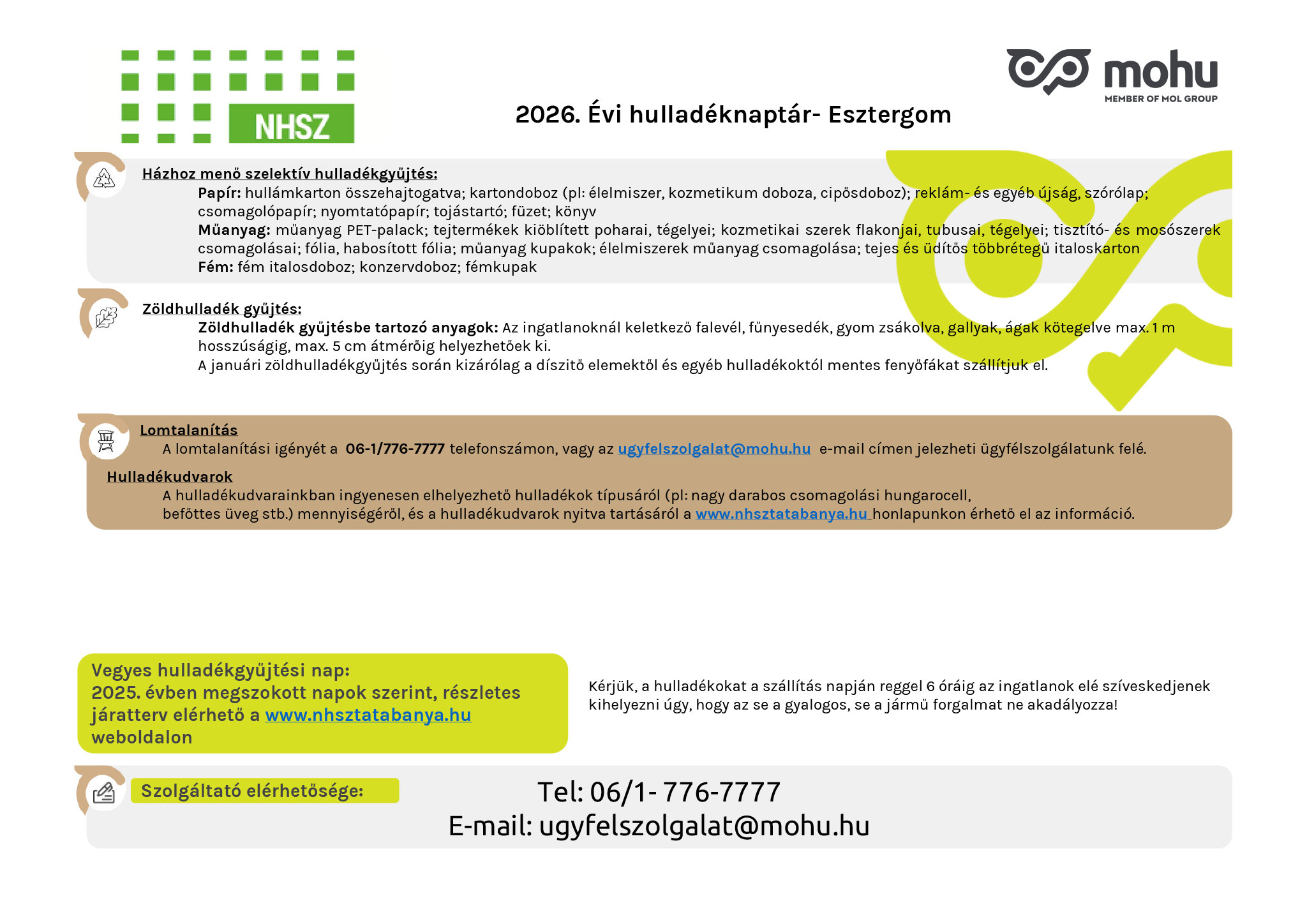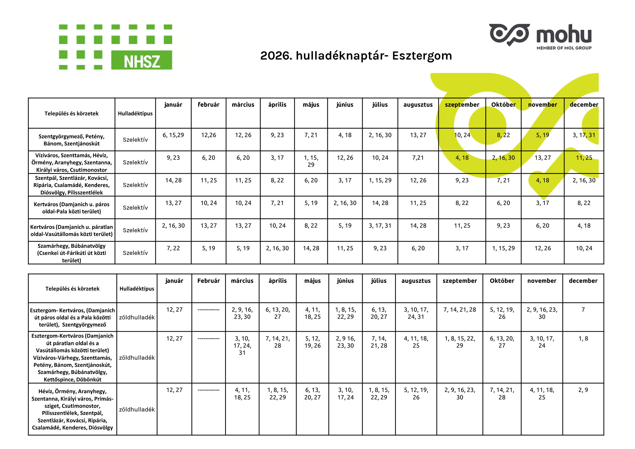 2026. Évi hulladéknaptár- Esztergom