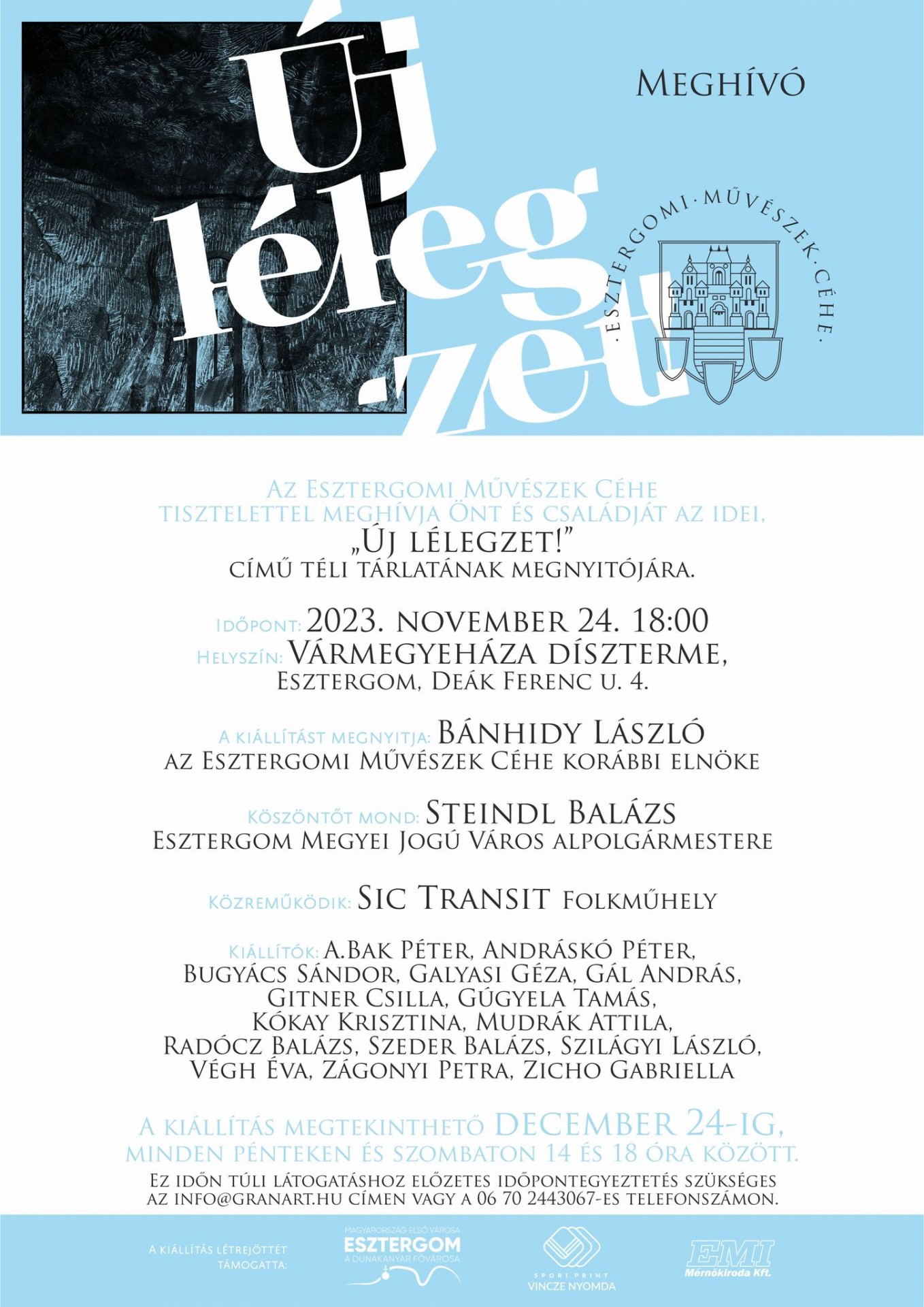 November 24-én 18:00-kor nyílik az Esztergomi Művészek Céhe téli tárlata a Vármegyeháza dísztermében!