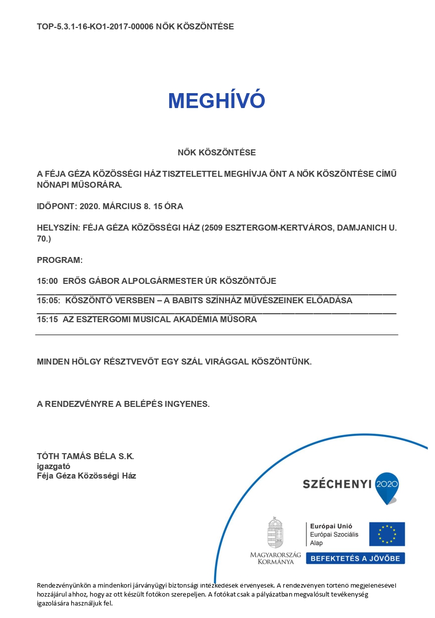 11. Nőnapi köszöntő és lakossági fórum - Féja Géza Közösségi Ház