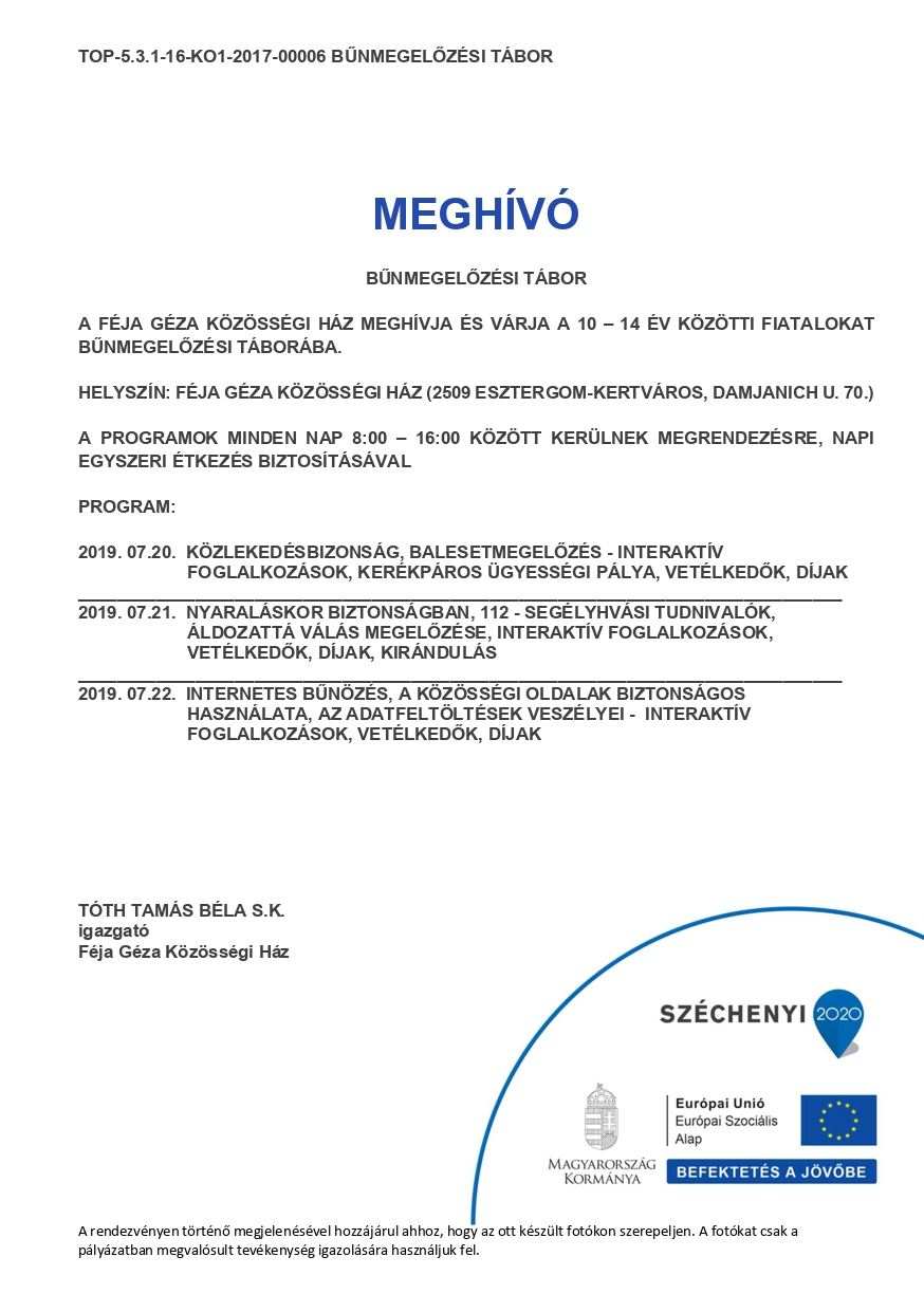 július 2-6. - Bűnmegelőzési tábor (Esztergom-kertváros)