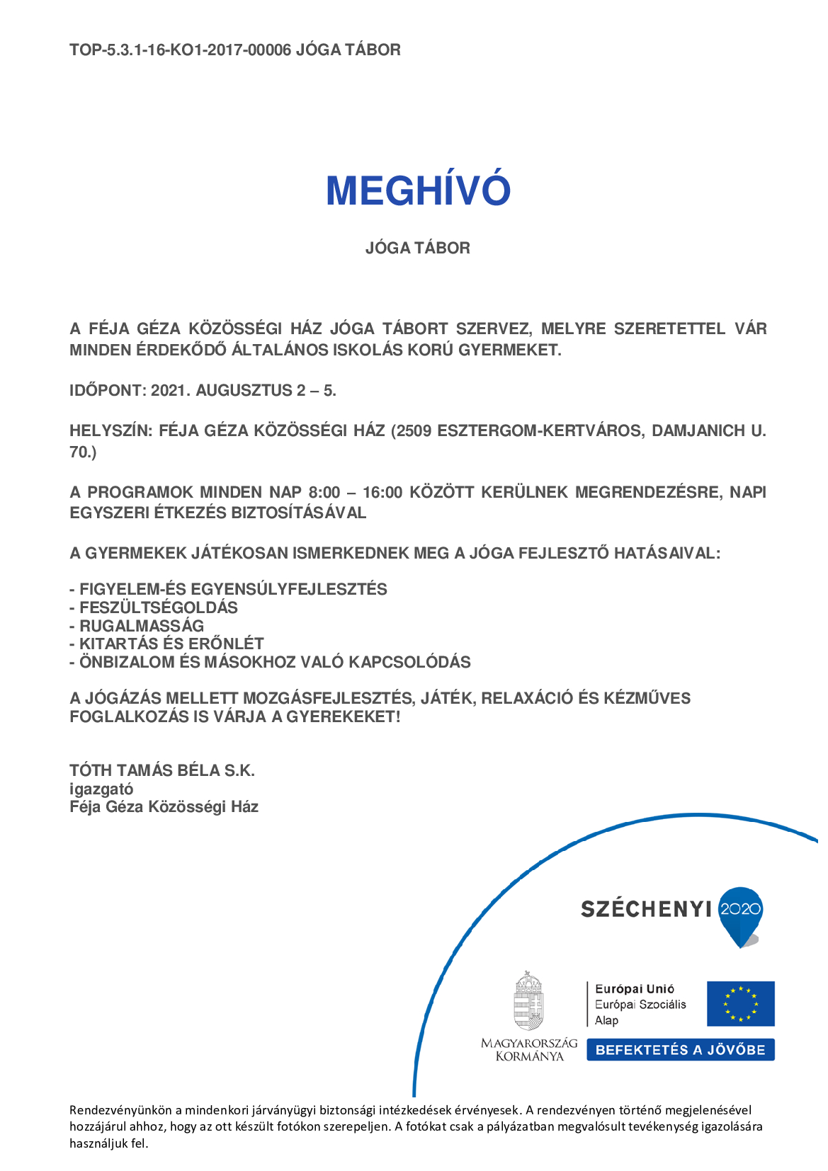 8-12. Jóga tábor II. - Féja Géza Közösségi Ház