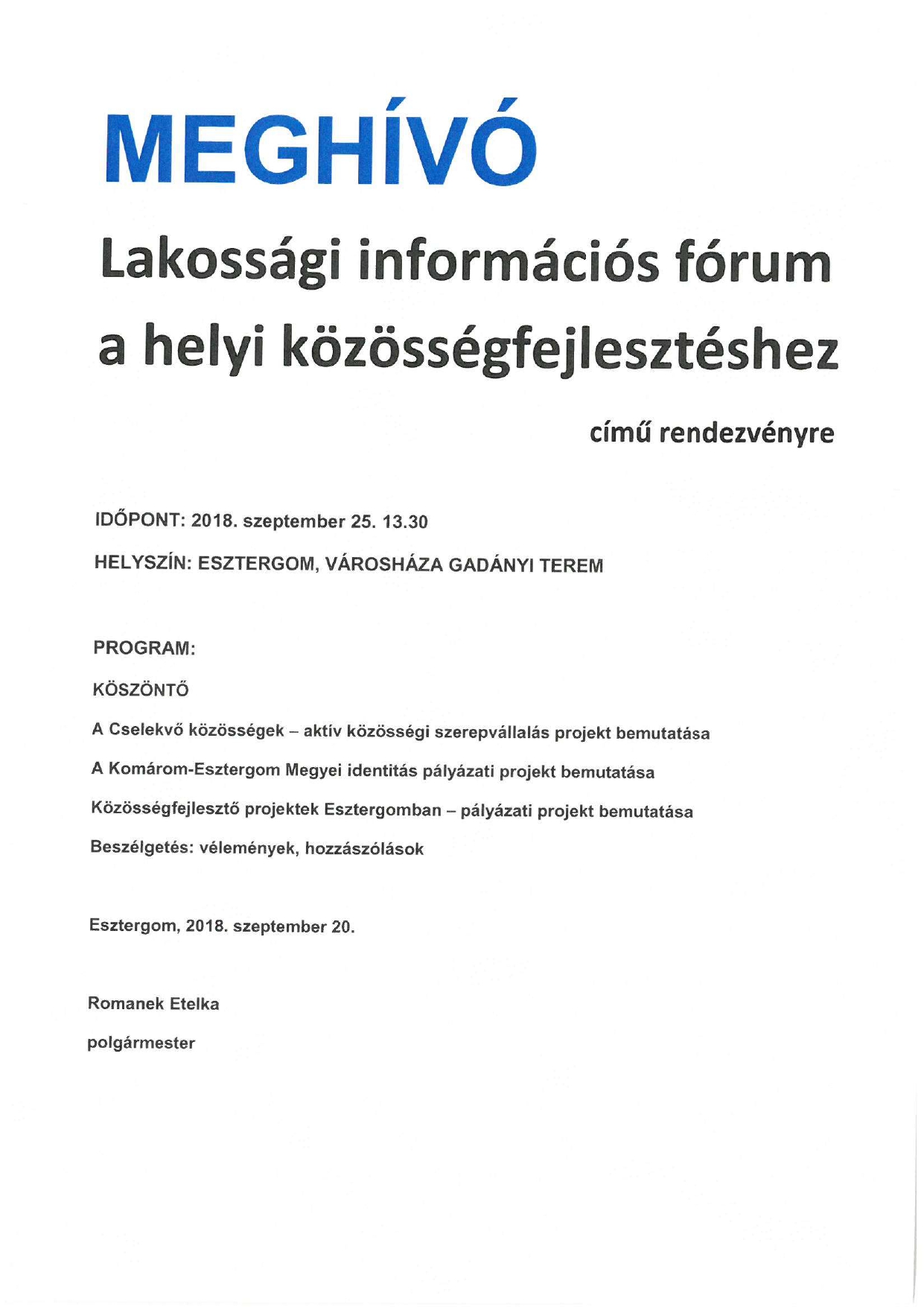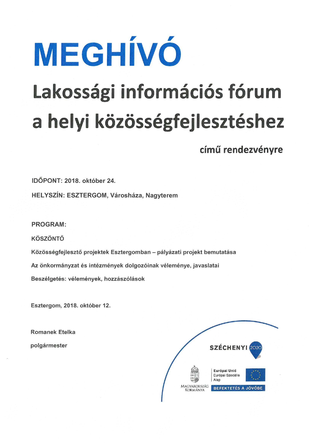 október – Lakossági információs fórum (Esztergom, Városháza)
