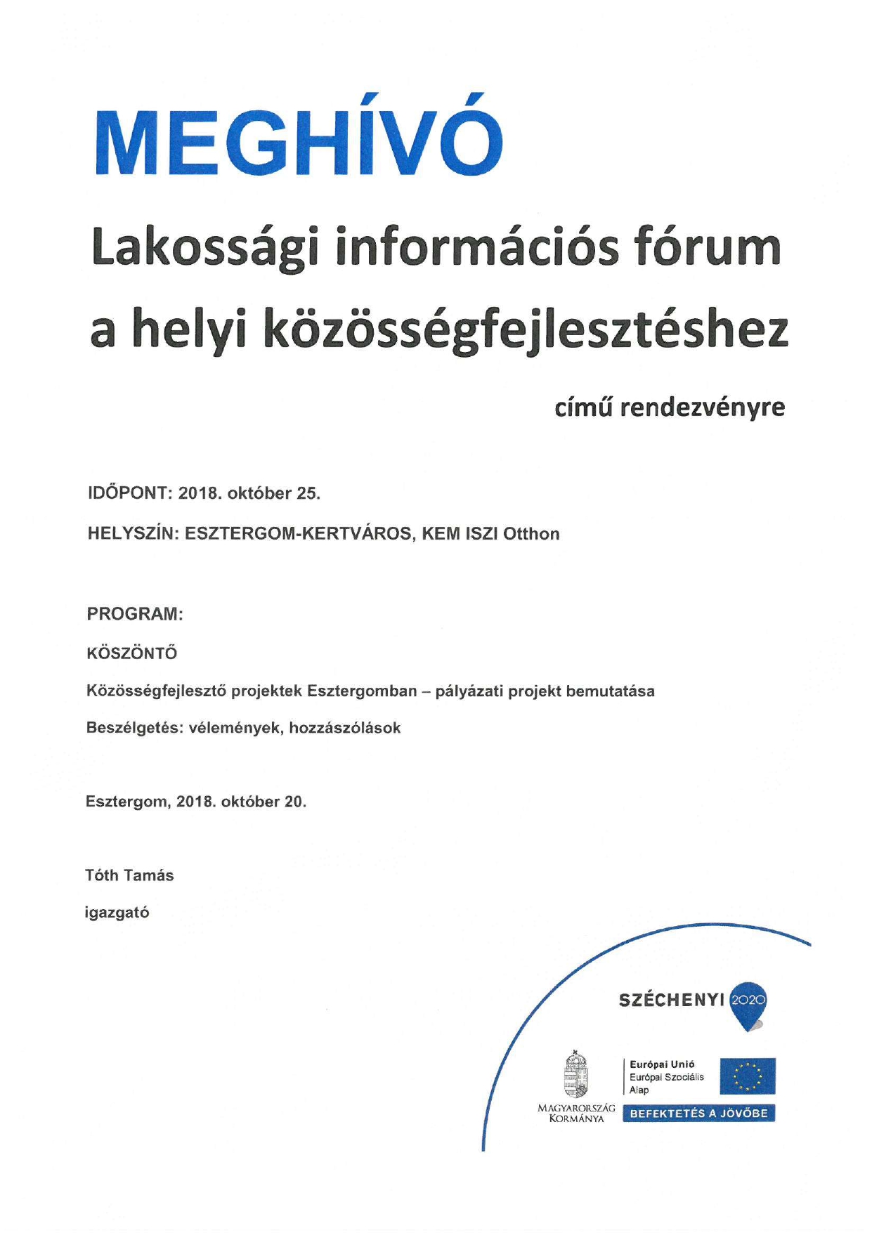 október - Lakossági információs fórum (Esztergom-kertváros)