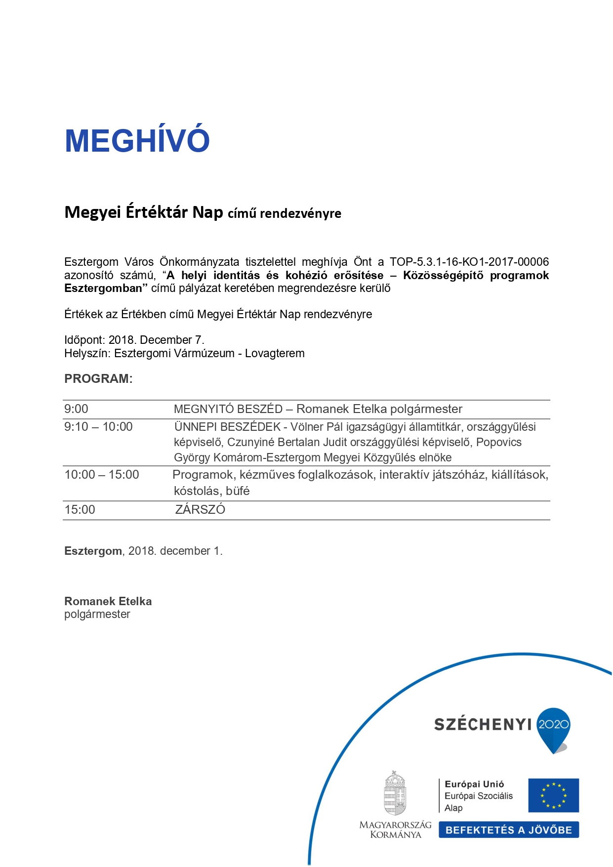 december 7. – Megyei Értéktárnap az esztergomi Vármúzeumban a megyei és a határmenti települések részvételével