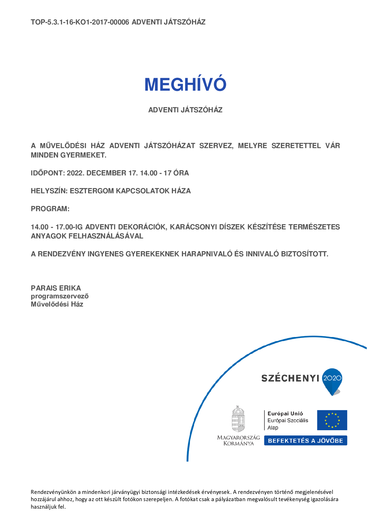 Karácsonyi Játszóház 1-2. - Művelődési ház