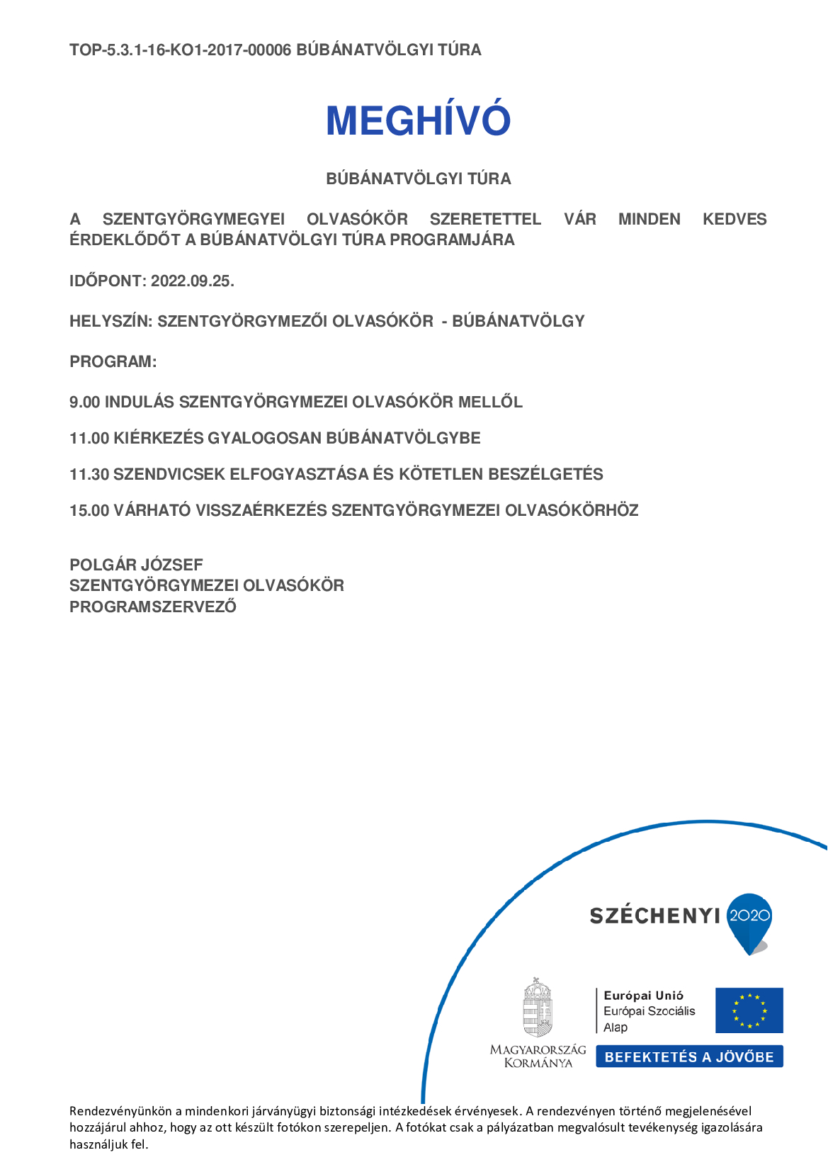 25. Búbánatvölgyi túrák - Szentgyörgymezői Olvasókör
