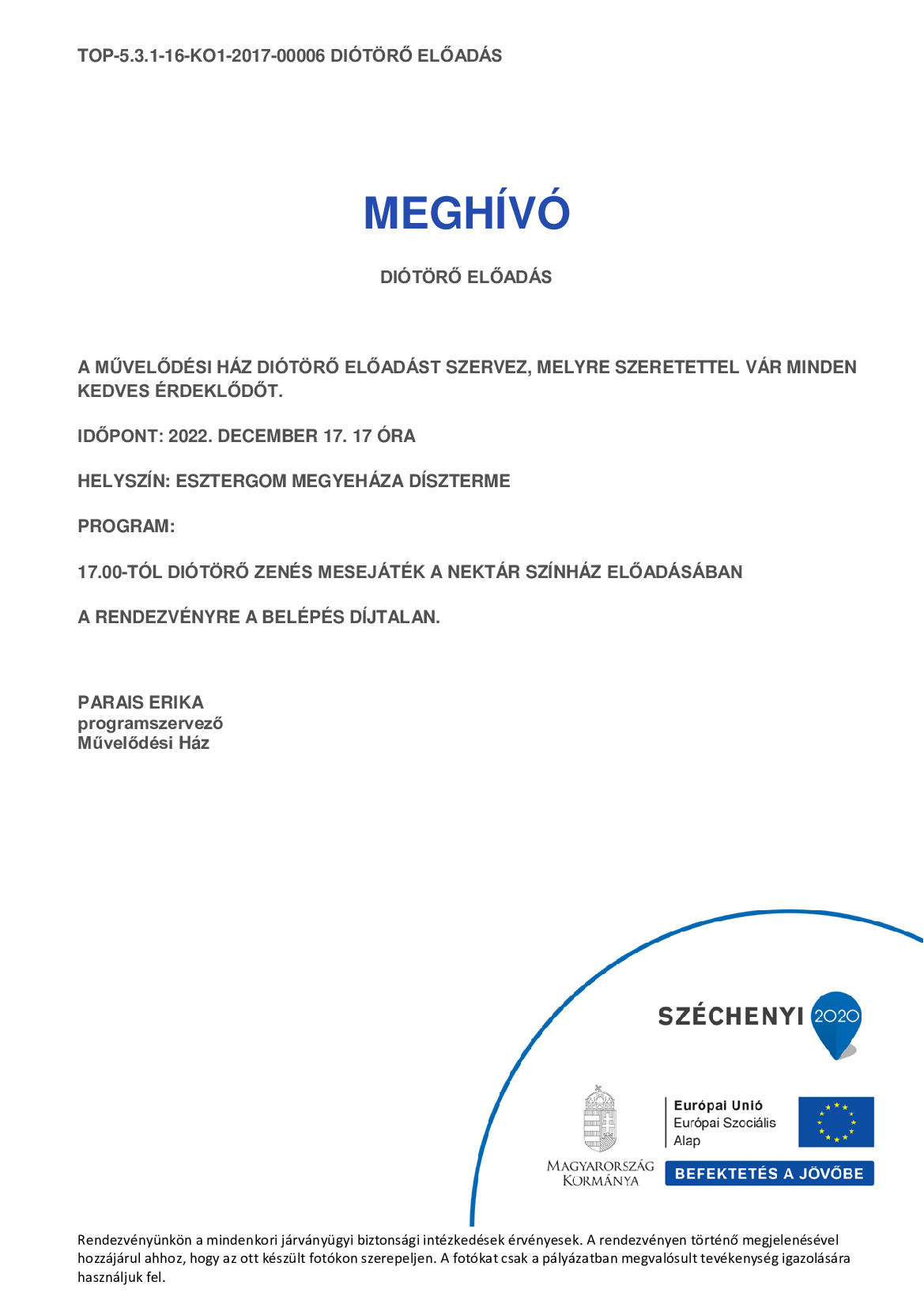 17. Diótörő Karácsonyi előadás - Művelődési ház