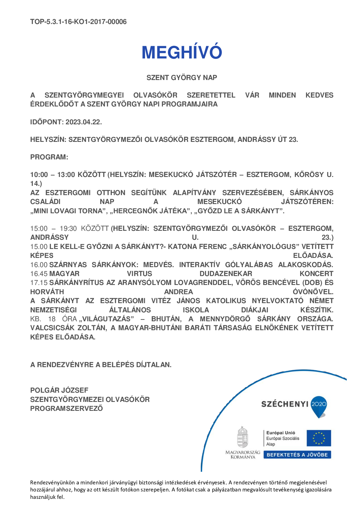 április Szent György nap – Szentgyörgymezői Olvasókör