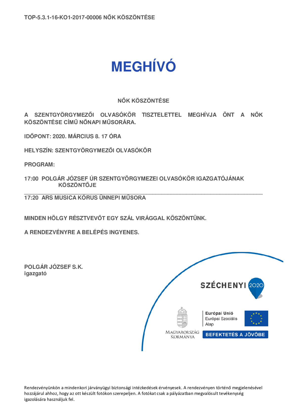 március Nő napi köszöntés – Szentgyörgymezői Olvasókör
