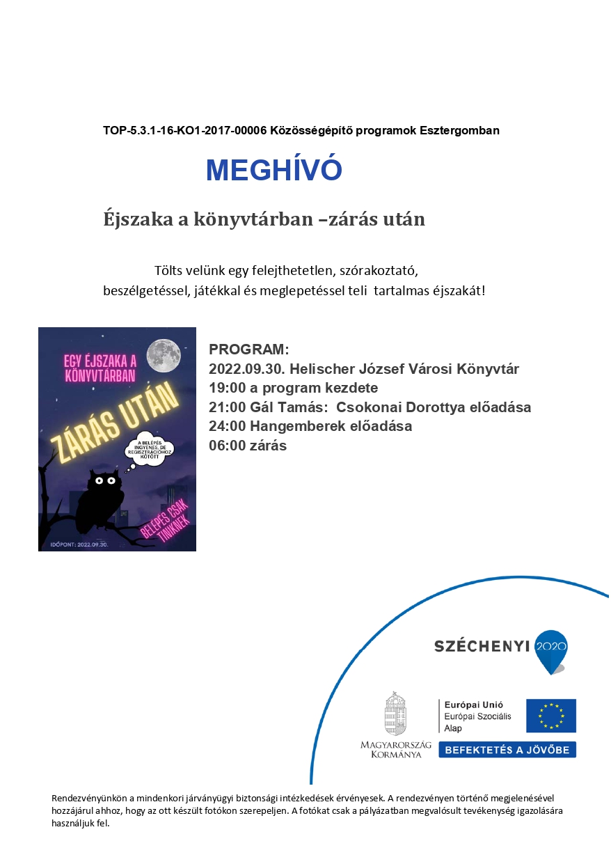 30. Könyvtár Másként/Éjszaka a könyvtárban - Helischer J. Városi Könyvtár